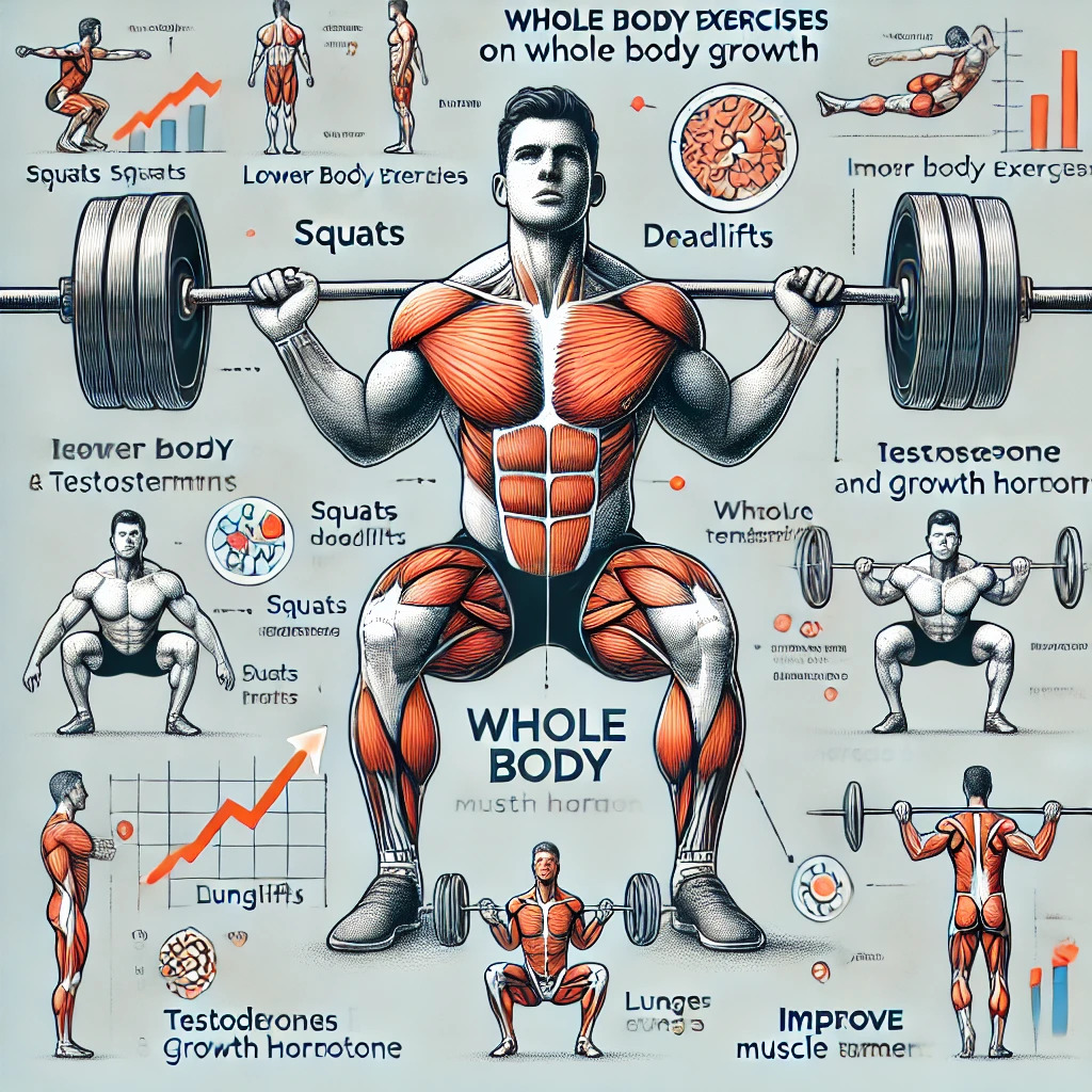스쿼트, 데드리프트 같은 대규모 하체 운동을 수행하면 신체는 더 많은 테스토스테론과 성장호르몬을 분비합니다. 이러한 호르몬은 단순히 하체 근육에만 작용하지 않고, 상체 근육을 포함한 전신의 근육 성장에 중요한 영향을 미칩니다. 이 때문에 하체 운동을 수행함으로써 상체 근육 성장을 더 효과적으로 촉진할 수 있습니다.