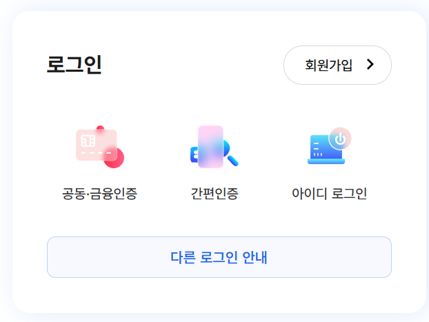 - 국세청 홈택스(www.hometax.go.kr)에 접속하여 공동인증서 등으로 로그인합니다